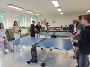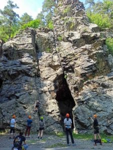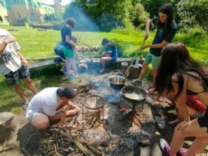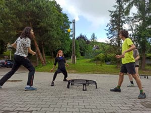 The weather has been mostly on our side, and after two days, we’re moving forward. Ahead of us are canoeing, orienteering, and cooking goulash. So far, we’ve enjoyed disc golf, table tennis, climbing on artificial boulders and real rocks, beach volleyball, spikeball, badminton, and hiking.