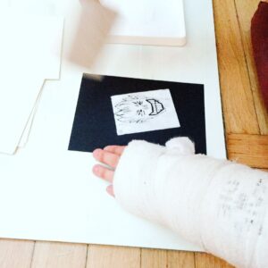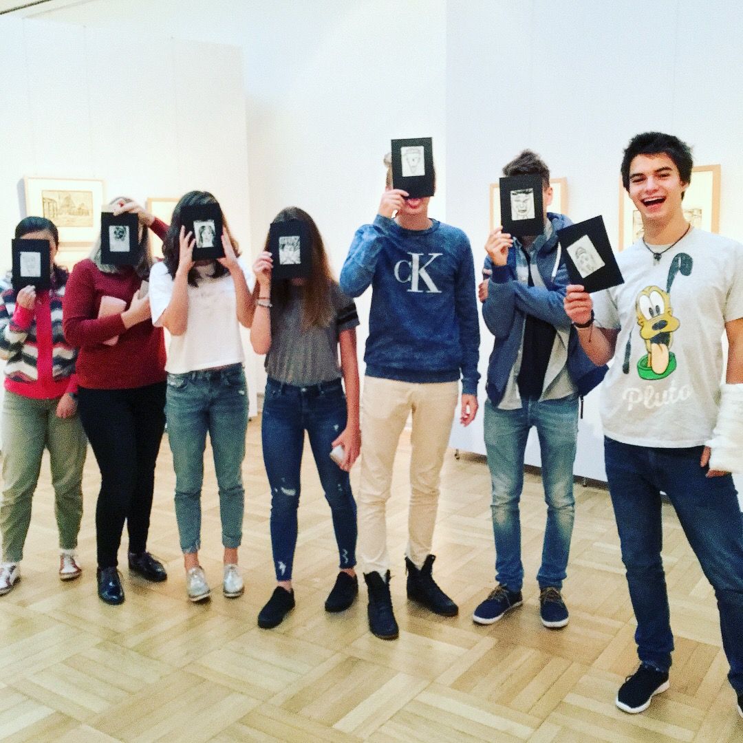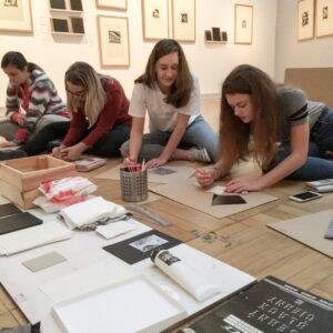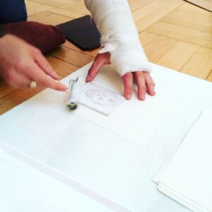 Today we visited an exhibition A Tribute To Invention during our art lesson. The exhibition is a tribute to a unique person of many talents, an architect, a stage designer and a painter Vlastislav Hofman. This exhibition introduces the artist’s scenographic work, architectural designs, painting, graphics and applied art. We also attended the gallery workshop EXPRESSIVE GESTURE and tried the technique of linocut.