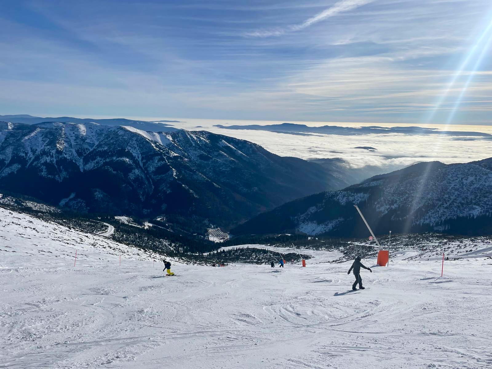 The ski slopes on both the north and south sides of Chopok welcomed us in great condition, and we enjoyed skiing from morning until afternoon. The weather felt like a fairytale — sunshine kept us warm and the snow was sparkling.